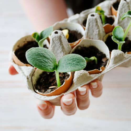หลายๆคนอาจไม่รู้ว่าเปลือกไข่/ลังไข่ สามารถนำมาปลูกผักได้ด้วย เปลือกไข่จะช่วยให้ผักเติบโตได้ดีเพราะอุดมไปด้วยแคลเซียม วิธีการทำเพียงนำเปลือกไข่สภาพดีมาล้างให้สะอาด ผึ่งให้แห้ง และใส่ดินเล็กน้อยแล้วหยอดเมล็ดลงไป เมื่อพืชโตขึ้นค่อยย้ายสู่กระถางที่ใหญ่ขึ้นเพียงเท่านี้ก็ได้พักสวยสุขภาพดีไว้ทานในบ้านแล้ว