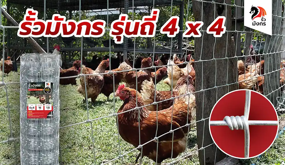 รั้วตาข่ายถักปม รุ่นถี่พิเศษ 4x4 นิ้ว เท่ากันทุกช่อง