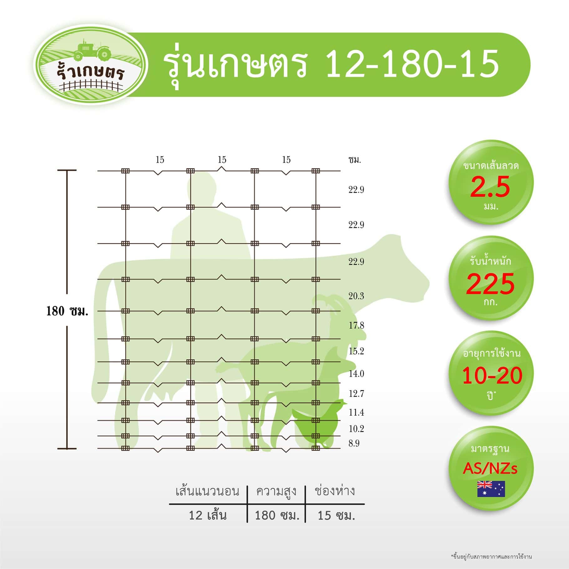 รั้วตาข่ายถักปมเกษตร รุ่น 12-180-15
