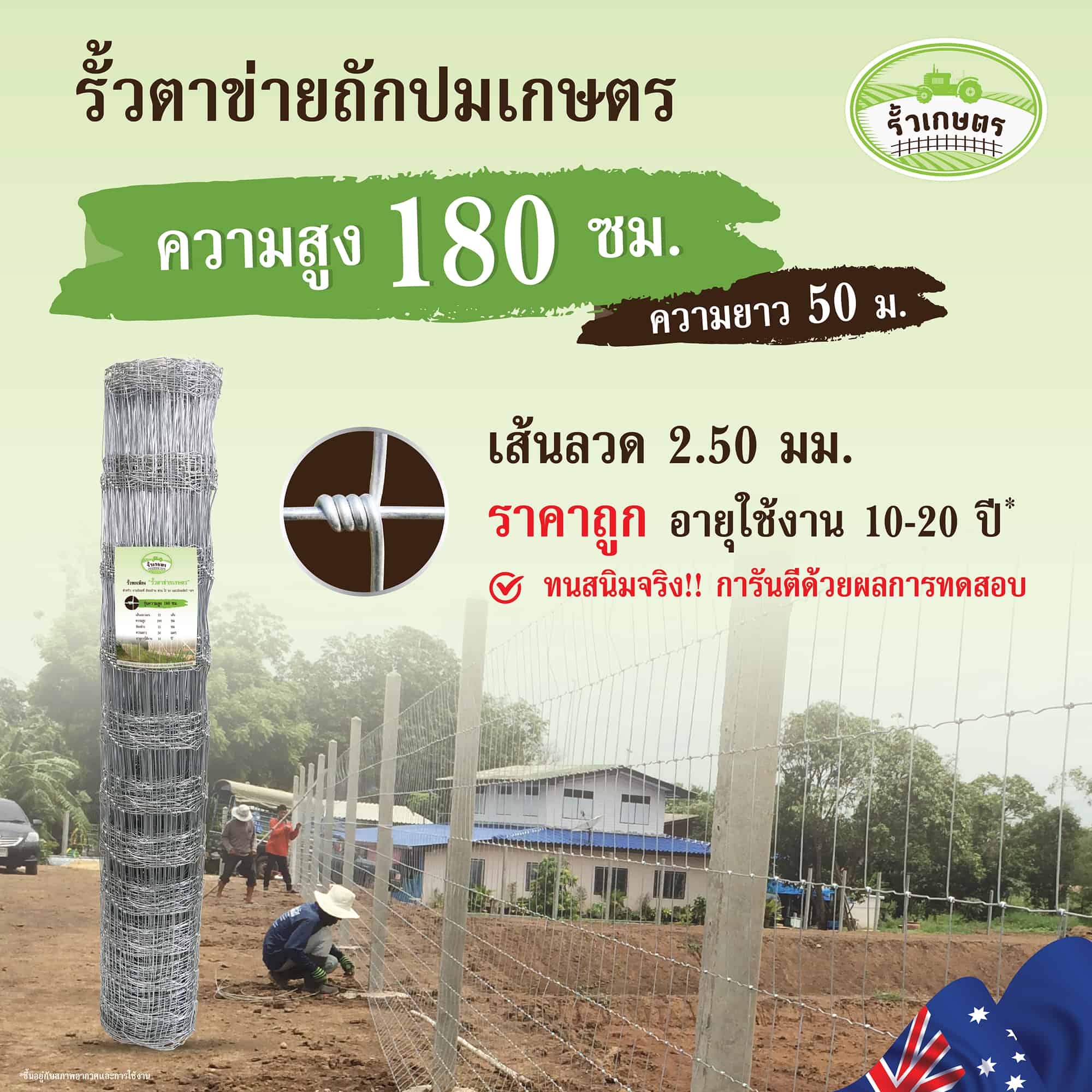 - ขนาดเส้นลวด 2.5 มิลลิเมตร ทุกเส้น ดึงรั้วให้ตึงได้ง่ายกว่า