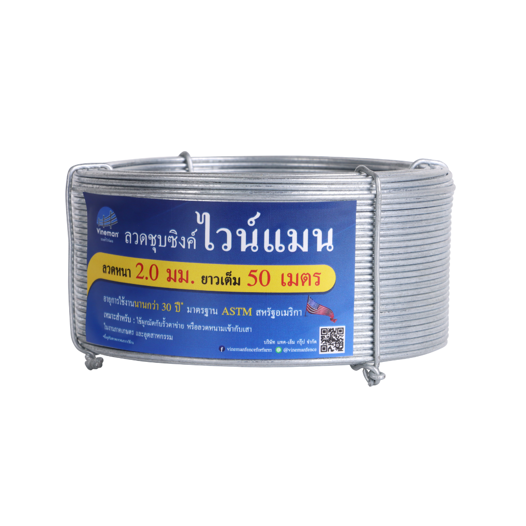ลวดชุบซิงค์ขนาด 2.0 มม. สำหรับยึดรั้วติดกับเสา แข็งแรง ทนสนิม ใช้งานกลางแจ้ง ยึดแน่น ไม่หลุด เสริมความมั่นคงและใช้งานยาวนาน